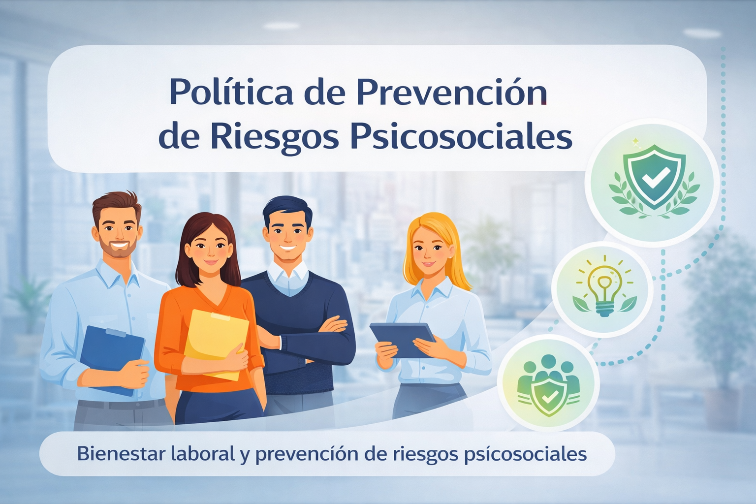Espacio informativo sobre la Política de Prevención de Riesgos Psicosociales, donde se presentan los lineamientos, acciones y responsabilidades para promover un entorno laboral favorable, prevenir la violencia laboral y proteger el bienestar de los colaboradores.
